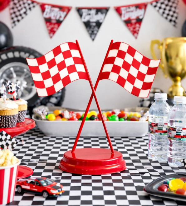 🏁 Race Car Flag Centerpiece – 3D Printed Party Décor 🏁